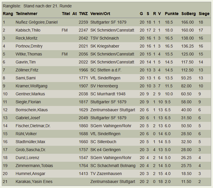 Damit ist Fritz auch erster Nachrücker für die Württembergische Blitzmeisterschaft 2026, falls noch ein Teilnehmer absagt und er teilnehmen möchte. Hier die Endtabelle:
